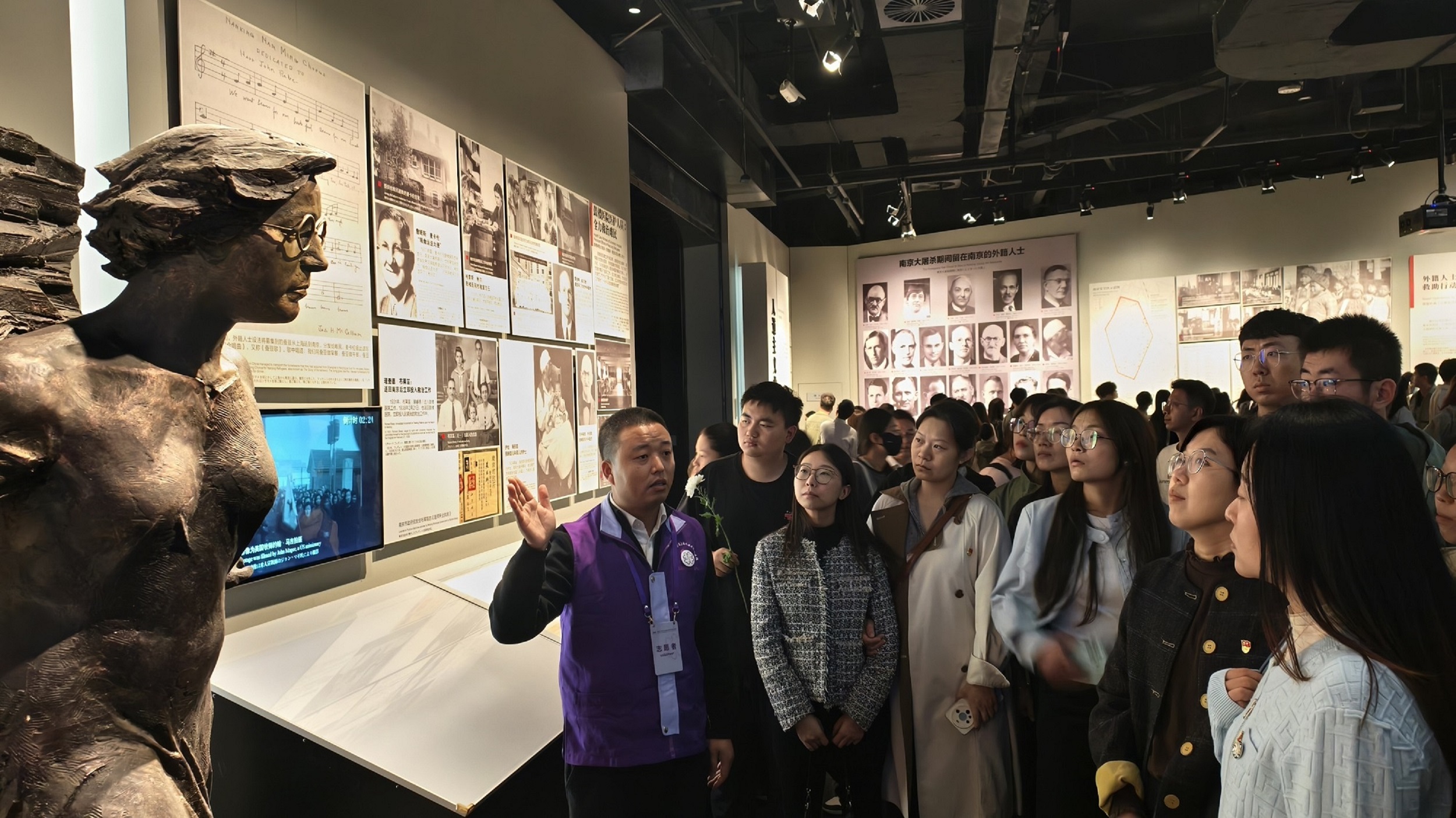 在史实展区,大量珍贵的历史照片、实物资料、影像档案以及精心复原的场景,真实再现了南京大屠杀的悲惨历史。历史的真相沉重叩击着每一位党员的心灵,党员同志们神情凝重,驻足凝视,仔细聆听讲解,一幅幅图片、一件件铁证、一段段幸存者影像,不仅让我们回望了当年的滔天罪行,更让大家懂得了和平的弥足珍贵。每一位党员同志都受到了极大震撼,更加坚定传承红色基因的历史责任与使命。